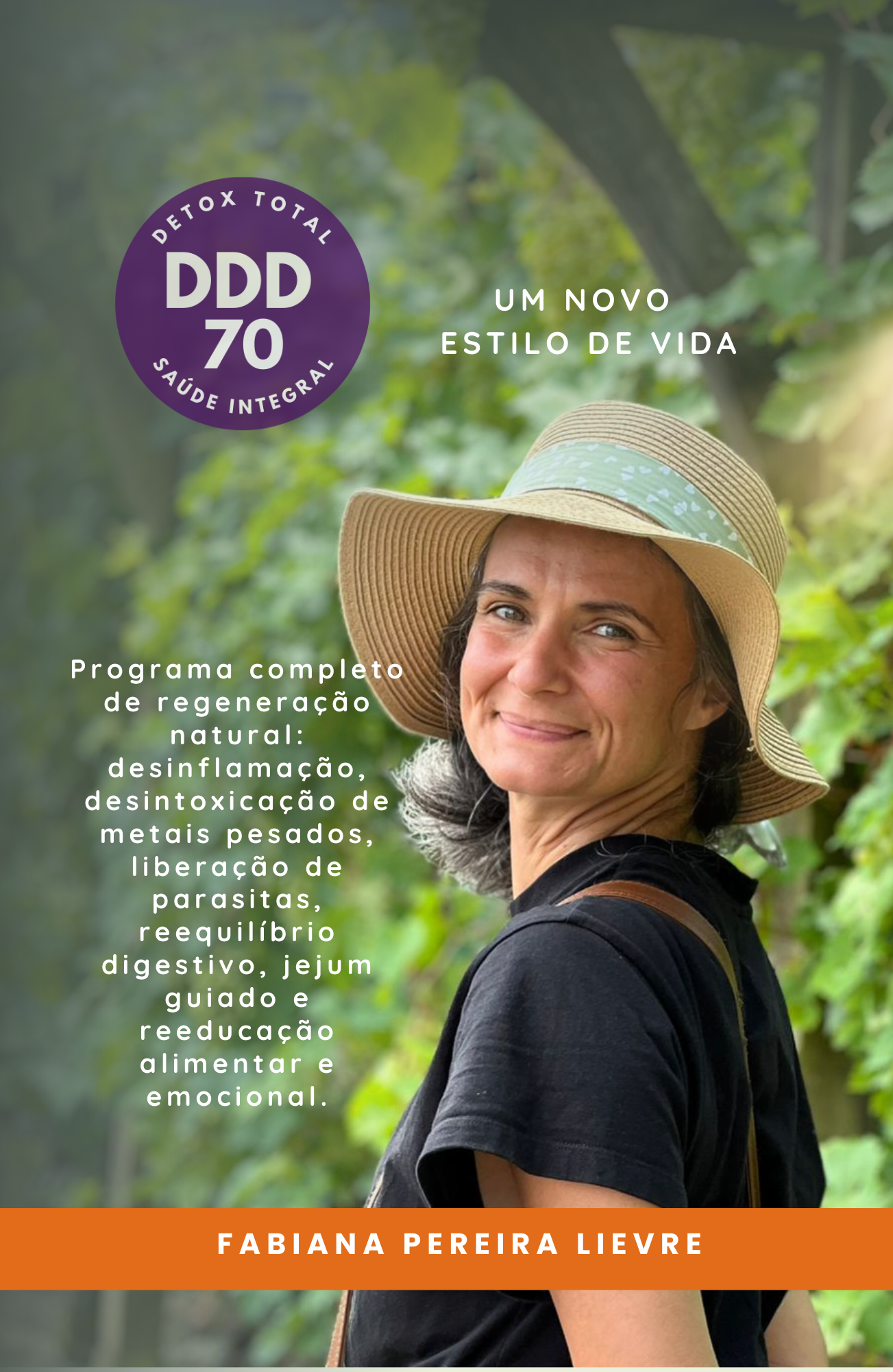 O DDD70 – Detox Total é um programa de 70 dias em que você vai fazer Desinflamação, Detox de metais tóxicos, Desparasitação, Prática de Jejum durante o programa e vai ter conhecimentos sobre alimentação e educação pessoal, para te ajudar a regenerar seu corpo, mente e emoções.
